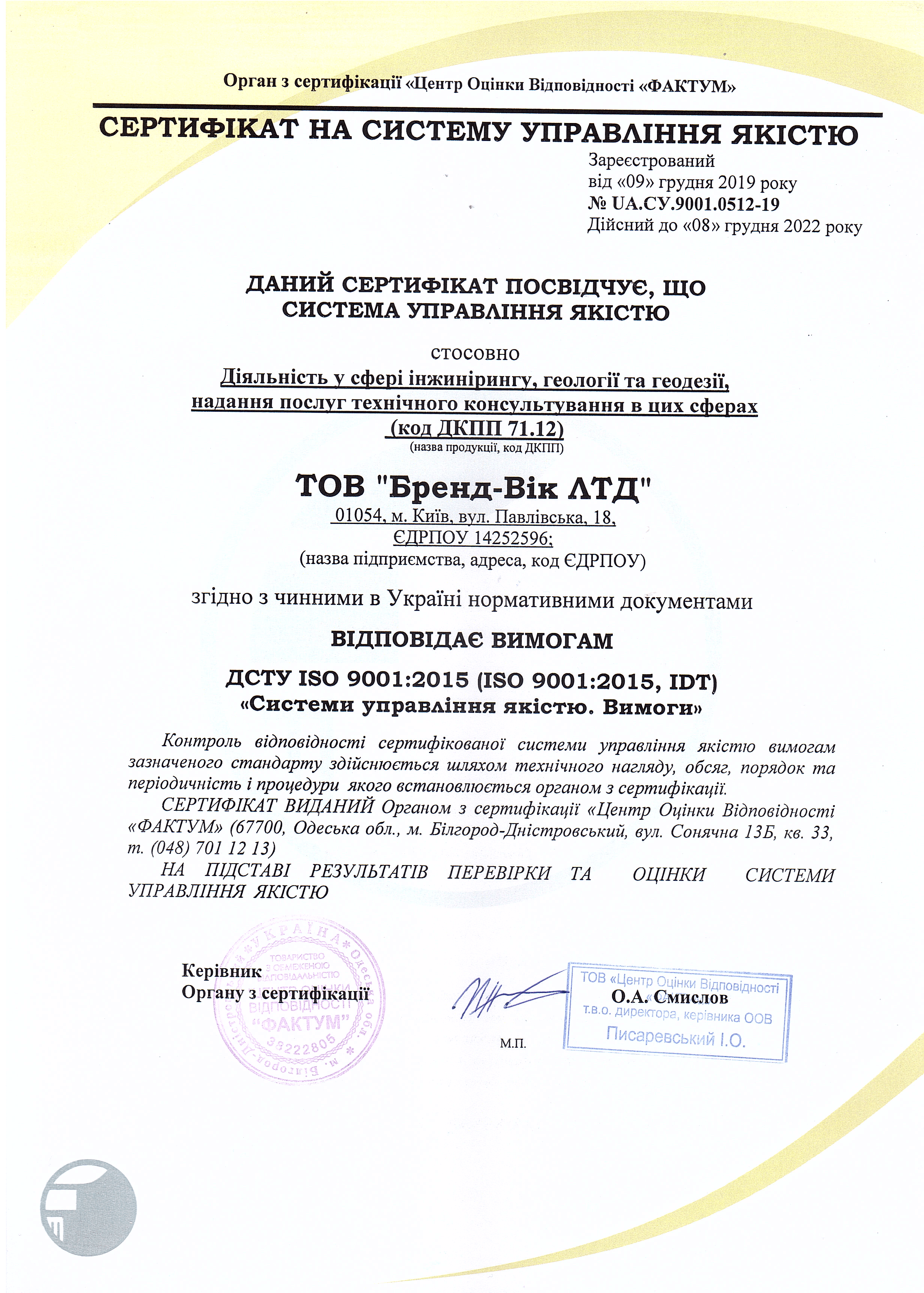 Ми успішно пройшли сертифікацію системи управління якістю ДСТУ ISO 9001:2015 з метою надання послуг на абсолютно новому рівні