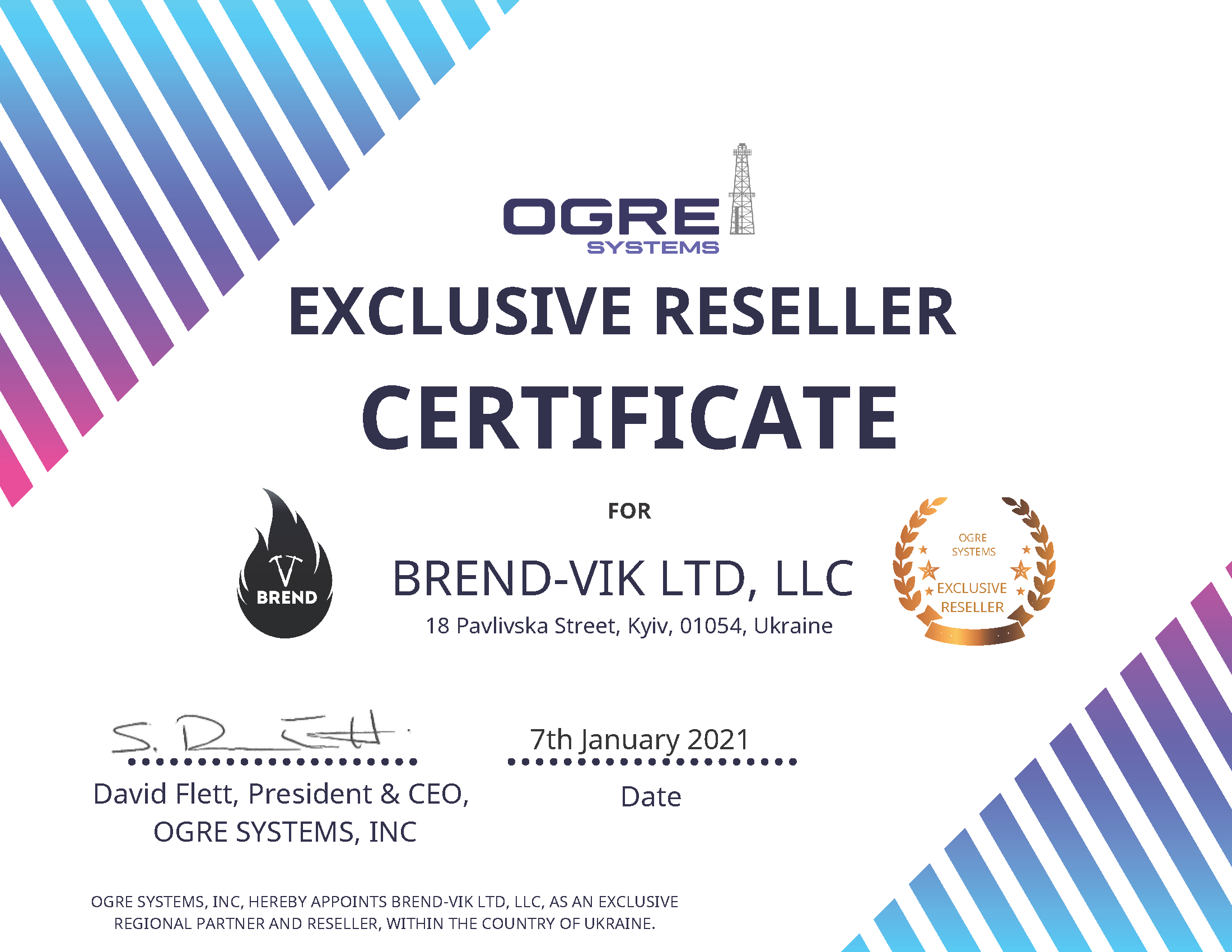 «БРЕНД-ВІК ЛТД» є сертифікованим партнером OGRE Systems Inc., а також ексклюзивним представником в Україні програмного забезпечення системи управління запасами нафти і газу – R3 Software, що дозволяє здійснювати оцінку вуглеводневих активів на абсолютно новому рівні.