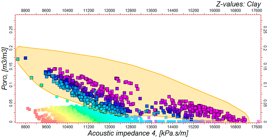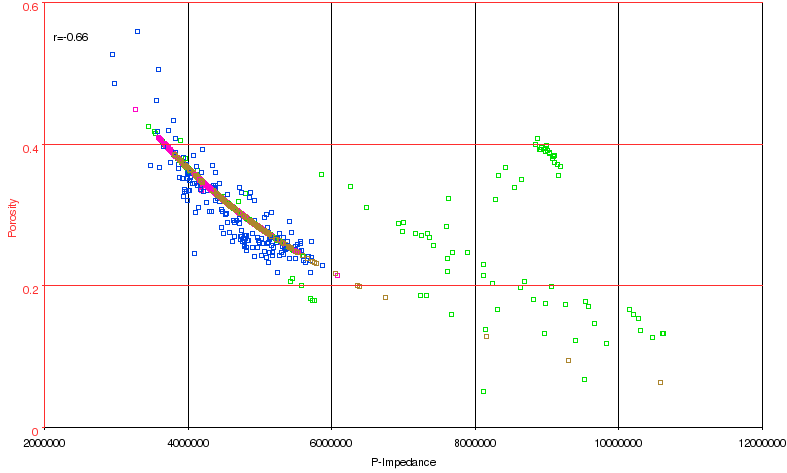 пористості методами геостатистики у зонах окремих літотипів або колектору, де залежність між акустичним імпедансом та пористістю